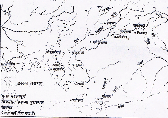 इस सभ्यता का सर्वाधिक पश्चिमी पुरास्थल सुतकागेंडोर (बलूचिस्तान), पूरब में आलमगीरपुर ( जिला मेरठ, उत्तर प्रदेश), उत्तर में मांदा (जिला अखनूर जम्मू कश्मीर), दक्षिण में दायमा बाद ( जिला अहमदनगर, महाराष्ट्र)