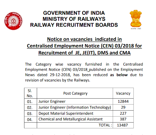 Posted inBlog RRB JE 2018 Vacancies Reduced, Posted by By paperdigit December 30, 2018No Comments0 SharesOFFICIAL NOTIFICATION — CLICK HERE Share via: Facebook X (Twitter) LinkedIn Email Print Copy Link paperdigit View All PostsPost navigationPrevious Post Allahabad High Court – AHC Recruitment – 341 Assistant Review Officer, Additional Private Secretary & Driver Vacancy – Last Date 07 January 2019Next Postvision IAS current notes